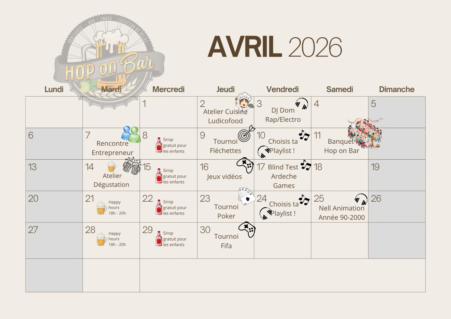 Des événements ponctuels peuvent également s’ajouter tel que :